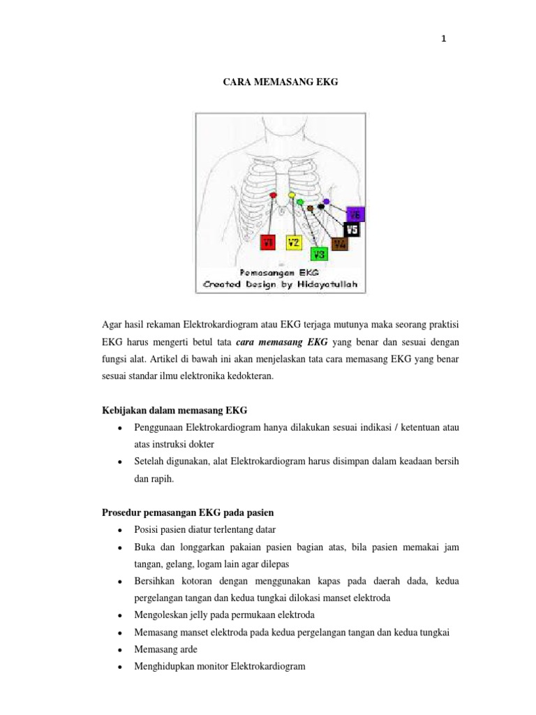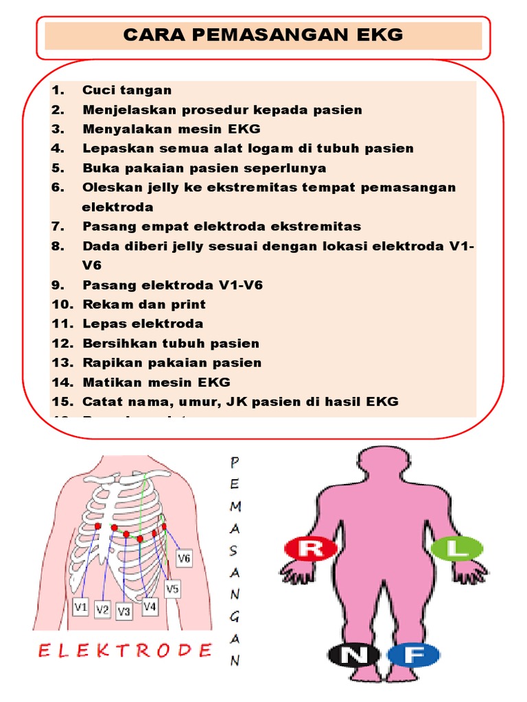 Langkah langkah pemasangan ekg. Dalam perjalanan abad ini perekaman ekg sebagai cara pemeriksaan tidak invasif sudah tidak dapat lagi dihilangkan dari klinik. Suatu elektrokardiogram ekg atau ecg adalah suatu pemeriksaan yang merekam aktivitas elektrik di dalam jantung anda.